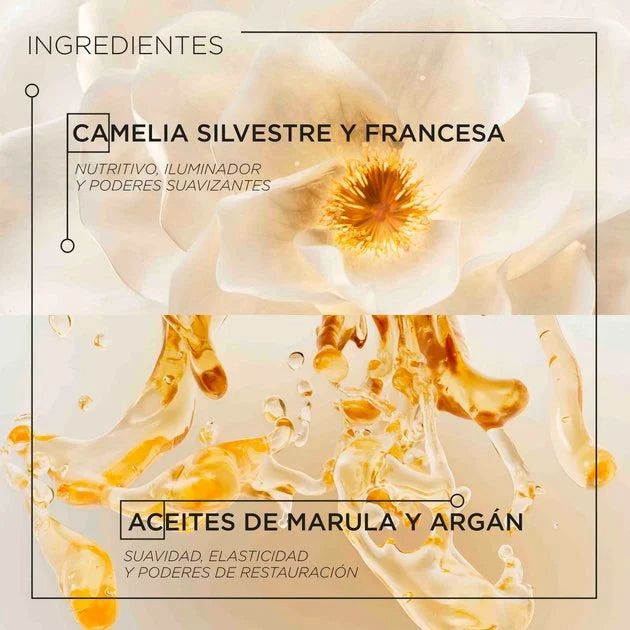 Sumérgete en el lujo absoluto de este opulento aceite capilar sin aclarado, delicadamente perfumado con la icónica fragancia Kérastase, y disfruta de una experiencia multisensorial que lleva el cuidado del cabello a otro nivel.